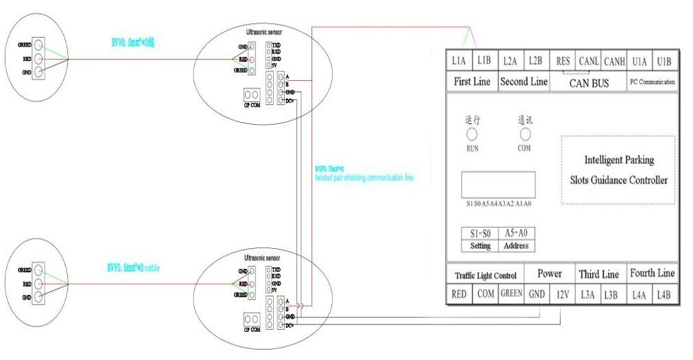 Technical Parameters: 32parking lots and 8pcs parking guiding system can managed by each RS485bus Main features: industrial grade 32bits ARM microprocessor